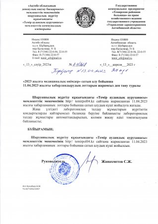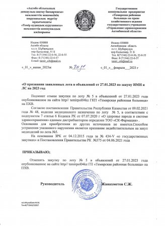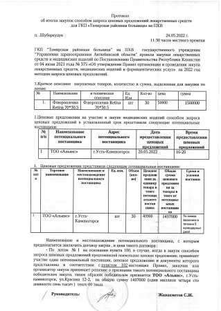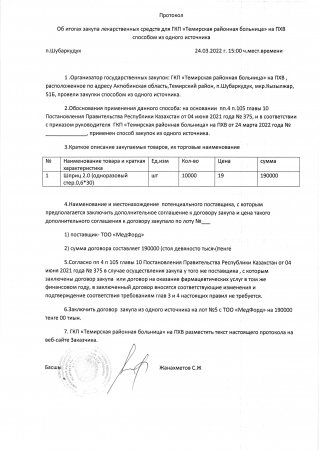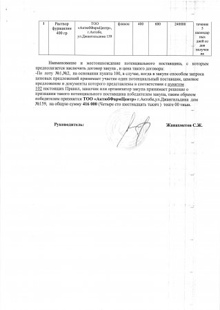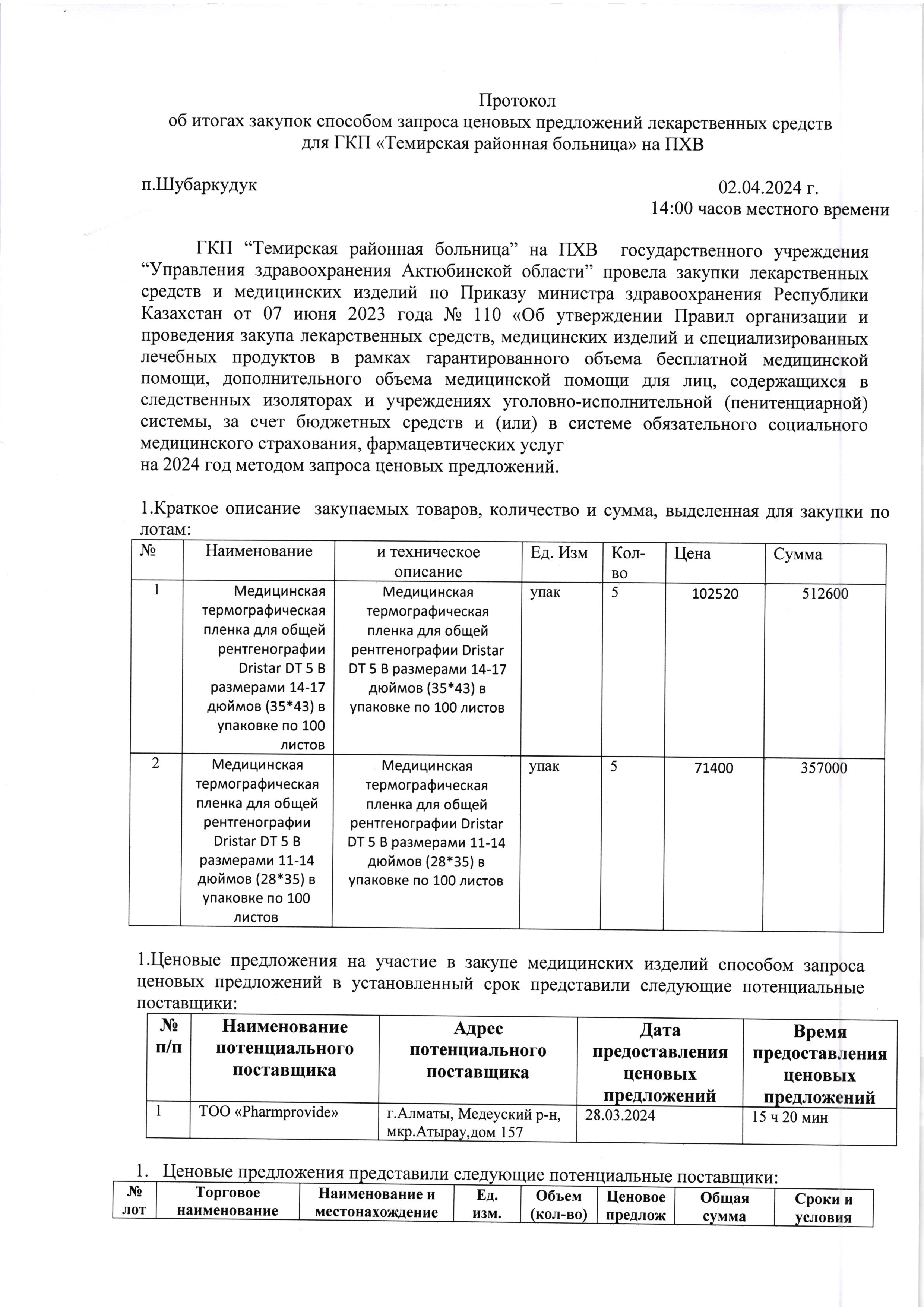 Объявление о закупе дискофиксrentgenplenka.pdf [630.57 Kb] (cкачиваний: 38) Протокол итогов закупа рентгенпленка